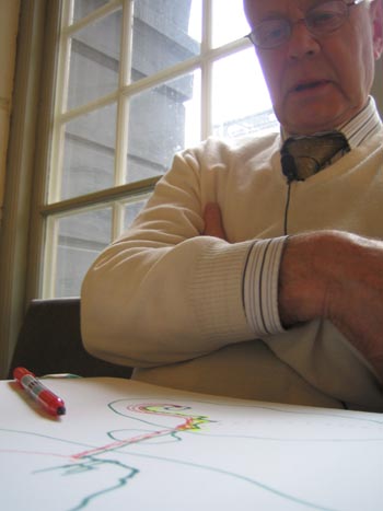“From Home to Here” encourages museum visitors to describe, in text and images, their route through town, from home to Stockholm's Stadsmuseum. The project is based on the annotated Stockholm maps of museum visitors. These maps, along with their filmed stories, make a series of each individual's special experience of the city.