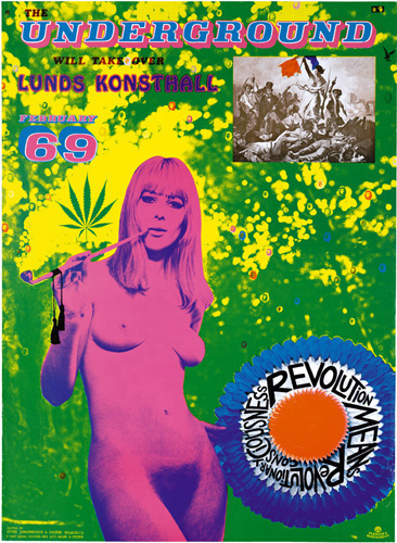 Over the past five decades many of Johannesson’s exhibitions have put him in conflict with government authorities in his native country. His practice enriches politically-confrontational artistic strategies with experimental graphic design and anti-disciplinary actions aimed at Sweden’s systems of social engineering. Such corrosive methods have led to long periods of isolation and ostracization from the mainstream art world, a history that has made him one of the most legendary and important Swedish artists alive today. The exhibition focuses on the breaking point that occurred in the late 1960s when Johannesson’s work moved away from the genre of Psychedelic Art and began experimenting with computer-generated graphics. The selection of works encompasses the poster series The Danish Collection (1967-69), presented together for the first time in Stockholm. The works were realized in the context of the Galleri Cannabis, an artist-run production and exhibition space started by Johannesson and his wife, artist Charlotte Johannesson, in 1965, which became a center for diverse social communities in Malmö. One of the eleven works, Revolution Means Revolutionary Consciousness! (1968), was commissioned by Lund's Konsthall to publicize the exhibition ‘Underground’, but soon became the pretext for repeated censorship of Johannesson's work. Revolution Means Revolutionary Consciousness!, 1968, 62 x 85 cm Lithography printed by Permild & Rosengreen Copenhagen Courtesy the artist It was in the framework of psychedelia — a misunderstood artistic movement influenced by the counter-revolutionary and generational turbulences of the period, which suffered from association with hippie clichés — that Johannesson first became interested in digital drawings. Information systems and cybernetics were a logical development of psychedelia’s interest in self-organization, the technology of the drug, and media that proposed forms of artistic production able to ‘turn on’ and ‘off’ within or outside of established institutional frames that seek to ideologically regulate the social body. They worked towards dissolving the hierarchical and behavioral relations of a bureaucratized mass society, contributing to more egalitarian and interdependent relations, which could improve, for instance, the standard of living. For Johannesson, who in the early 1980s visited the Palo Alto Research Centre and Apple founder Steve Wozniak, digital media opened up new modes of pleasure that immunize the mind; they were autonomous vehicles defining other psychic, socio-political spaces created by us and no longer attached to a Freudian concept of the self. As production tools tracing correlations between constructed and programmed systems, computers could not be instrumentalized for ideological or poetical purposes, but could enable us to get closer to what we could not see.