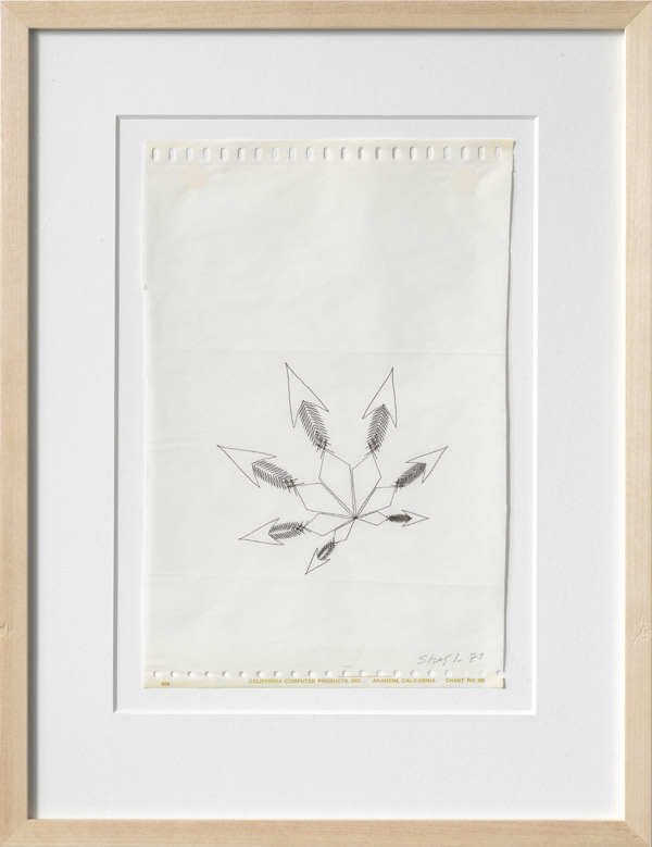 Intra Secus – Leaves, 1971 (variation 1) Computer generated drawings, IBM 1130 programmed by Sten Kallin, CalComp plotter Courtesy the artist The exhibition presents early graphic printouts realized between 1970 and 1975 in collaboration with the Swedish IBM programmer Sten Kallin. Series like Leaves (1971), Computer Paragraph (1971) and Yin-Yang (1975) are now considered pioneering computer works. All works were produced by cards fed into a screen-less 1130 IBM machine. Mathematical algorithms would produce culturally-conditioned images easily identifiable (cannabis leaves, legal paragraphs, yin-yang, etc.) on a CalComp drum plotter 30cm-wide paper roll. The programmed codes would intentionally de-personalize these motives, morphing symmetric data into multi-colored fields, occasionally accompanied by quotations from artists who deployed pre-digital ‘systems aesthetics’ such as Ad Reinhardt. This routing process of perforated cards can be considered a sort of ‘memory’, an idea recovered by Johannesson to reveal a little-known and somewhat under-theorized piece of art history from the late 1960s, defined by the advent of the first computers. However, his exhibition title transforms this process into ‘memery’, taking its inspiration from Dr. Susan Blackmore. The British writer and psychologist argues that ideas replicate themselves from brain to brain like a virus, that humanity has spawned a new kind of meme, the teme, made of self-replicating ‘life forms’ spreading themselves via human consciousness by means of the technologies that we have created.¨ Sture Johannesson (b. 1935, lives and works in Skanör, Sweden) has exhibited widely internationally. His recent exhibitions include Antechamber/Salon by Dexter Bang Sinister at Kunsthal Charlottenborg, Copenhagen; New Jerseyy, Basel; Sociodelic Paths at Kraupa-Tuskany Zeidler, Berlin (solo); transmediale 2012, Haus der Kulturen der Welt, Berlin; The Inaccessible Poem, Fondazione Merz, Turin; Forms of Resistance at Van Abbemuseum, Eindhoven; Counterclockwise Circumambulation at Lunds konsthall (solo); A History of Irritated Material, A Study in the Ethics of Discomfort: Cannabis Gallery and A Cut in the Groin, Raven Row, London; Sensorialités Excentriques, Olivier Michelon, Musée départemental d'Art Contemporain de Rochechouart, Rochechouart; Bit International, Neue Galerie Graz, ZKM Karlshruhe, Germany; Strange I’ve Seen That Face Before, Museum Abteiberg, Mönchengladbach. He is currently one of the participating artists in the current group exhibition The Society Without Qualities on view at Tensta konsthall until May 26th, 2013.