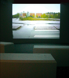 In the lower gallery, Markus Degerman shows a sequence of images in his DVD-installation "Leftovers" (2002), portraying various episodes occurring in indeterminate public spaces: part of an urban construction, as it appears in the often undefined suburban areas which we consider ugly or badly planned. By modifying and defining these environments, the artist wishes to suggest another, more unprejudiced view that at the same time leaves the door open for a possible transformation. In his work Markus Degerman poses questions about the hierarchies that affect our attitudes towards concepts such as beauty, quality and value. His initial inspiration also came from political issues regarding who the city belongs to. Could one practical scenario in the future be to allow certain areas of the urban environment, whose function is presently unclear to be utilised by those parties interested in it? Markus Degerman went to art school in Umeå, 1993 - 1998. Recently, his work was shown at the Life Gallery, Stockholm, Artgenda in Hamburg and Eskilstuna's Art Museum (2002). Markus Degerman is a member of the design group Uglycute, who are participating in this year's Venice Biennial.