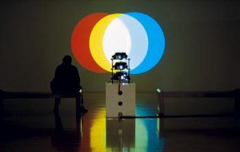 Magic Lantern with its three discs of light, red, yellow and blue that overlaps and shifts in scale - either small, or flooding of our visual field. Jean Fisher, writing on