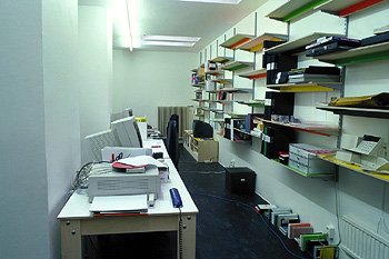 Luca Frei:In a way I wanted to make the office less "office". One of my first intentions was to create a space that would be both office and playground, resulting in a more open and dynamic whole. Therefore it was important to consider the furniture not as office furniture but as functional objects that could be used for different purposes. It helped the fact that in the room there is a complete kitchen set, and that somehow already gives a more familiar and personal character to the space.