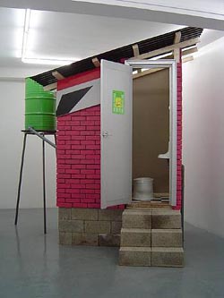 Marjetica Potrc:'Caracas: Dry Toilet', Nordenhake Gallery, Stockholm, 2004. Case study and reconstruction of project in Caracas. Swedish artist Dorinel Marc has chosen Potrc's work as the subject of discussion during his part of The Work in Focus.
