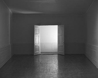 The artist has utilised the same architectural construction in the two films showing at Index, where a DV camera, rotating 360 degrees, is placed in the centre of a model structure. However the finished films accentuate the viewer and his gaze, rather than a paranoid insight of being subjected to continuous surveillance. In presentation, the scale of the filmed models shifts, by projection, to a 1:1 scale in relation to the exhibition space. This provides a more ambivalent relationship to reality and to the viewer, with associations to Wilhelm Hammershøis painted, low-key interiors and to cinematic precedents. These references cover both the mode of procedure current in cinematic practise as well as the films psychological content. Jonas Dahlberg´s film installations bear a distant kinship with the same sort of hypnotic effect that is experienced, for example, in Stanley Kubrick´s The Shining with the camera1s thrilling journey through a corridor system, or in Chantal Akerman´s more tranquil documentary-like narratives of hotel interiors in the film Hotel Monterey from 1973.