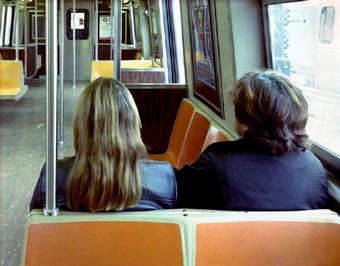 The earlier photographs in the Sans Titre series are characterised by individual people isolated within the city environment - in a cityscape. What captures viewers´ attention above all, is perhaps, the expressions of those photographed. Jouve laboured to "construct" these spaces. The laborious photographing of staged situations, an isolated person in the urban environment. Later work, about 1 or 2 years ago, involves registering and objectively documenting spaces that already exist. Jouve says that it is about discovering a space by being in it. By seeing what actually makes the space what it is. What it is that creates a perception about the space. She pursues concepts about movement and speed. About motion and non-motion. A reflection of time - time and space in unbreakable unison. And man´s presence and absence.