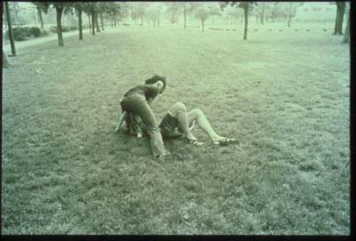 This includes Peter Kennedy's Other than Art's Sake 1973 - 1974, a documentary including interviews of artists and featuring their work from the era being presented, including among others Adrian Piper and The Mythic Being. This documentary film is shown in order to offer visitors a reflection of this particular period and a presentation of the political era in which Adrian Piper and some of her colleagues created their work. Other than Art's Sake 1973 - 1974 was filmed in New York, London and Edinburgh. Also seen here are Ian Breakwell, Judy Chicago, Hans Haacke, David Medalla, Arlene Raven, Charles Simonds and Stephen Willats.