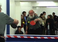 Much of Július Koller´s work contains various references to sport. In this context, sport represents a society or a situation based on rules that apply to everyone and includes ‘fair play’. For the Index exhibition, Július Koller presents ‘Stockholm Cultural Situation’ – a performance where the artist plays table tennis with himself.
