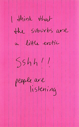 Joseph Grigely talks and lip-reads. But sometimes, there are misunderstandings and certain things need to be clarified. That1s when people write notes for Joseph. Sometimes it is a little story, sometimes a complete sentence, but mostly it is just a few, individual words. These notes comprise the core of Grigely1s work. These fragments of past conversations are linguistic snapshots saved by the artist / archivist. The messages can be totally incomprehensible, yet also deeply personal. Sometimes the paper that the text is written on is itself the message. It could be a check from a restaurant in Birmingham, a serviette with a logo, a ticket from a museum, the backside of an opened envelope...