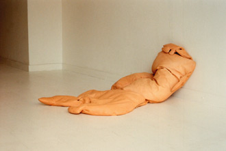 We know what a map is: an image of an area, a country, a sea, a territory. An abstract sign for a physical reality of some kind. This also goes for the maps Katarina Löfström makes. But she is playing with abstraction. Once again the signs becomes physical reality, in the shape of big cushions in skin coloured leather. The legibility of the sign is blurred when it takes physical form and the objects lead us to a number of associations. The map becomes an image of both a geographical and a mental landscape.